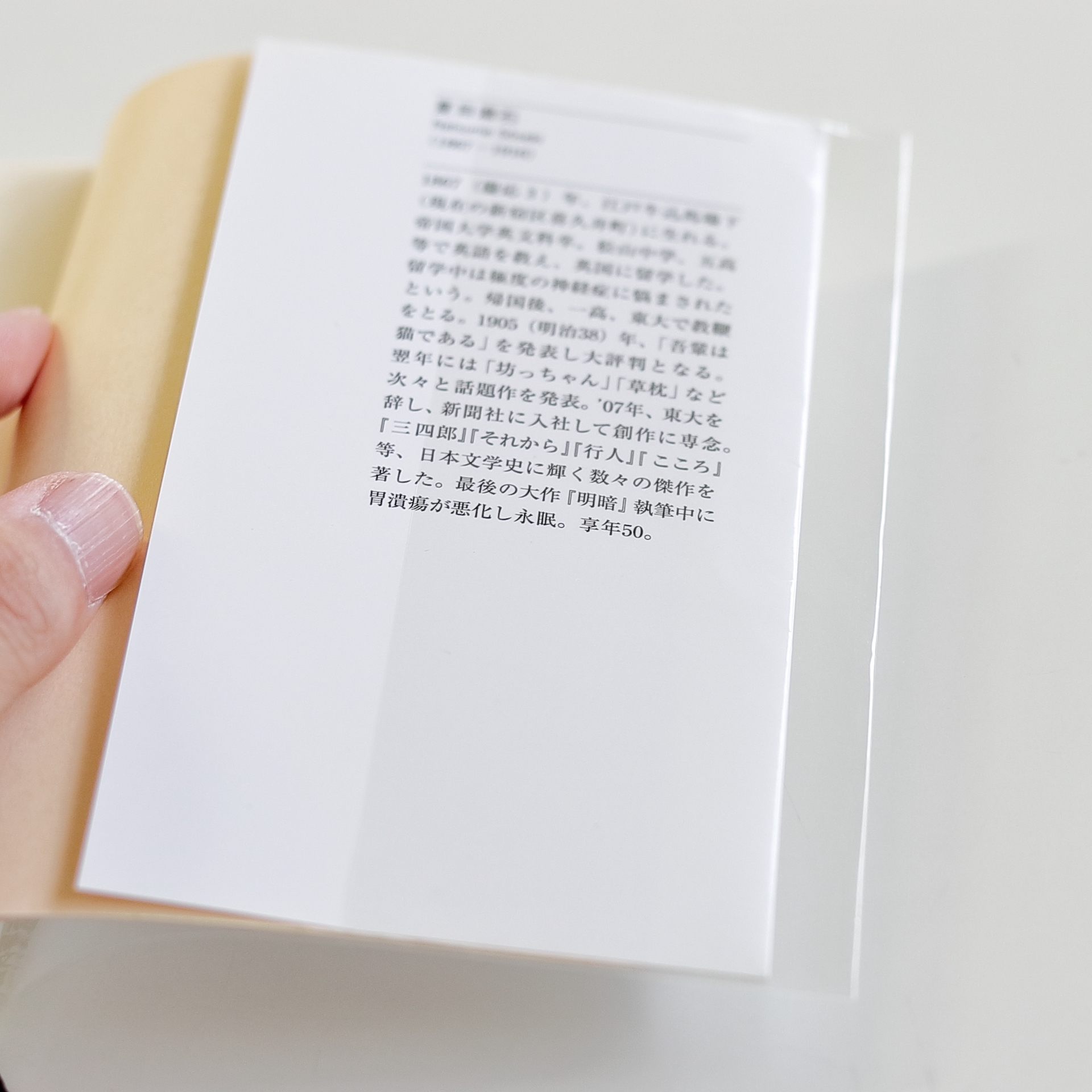 (3)位置を調整してテープを帯に貼り付けます透明ブックカバーの一例